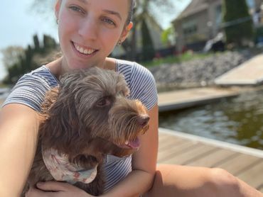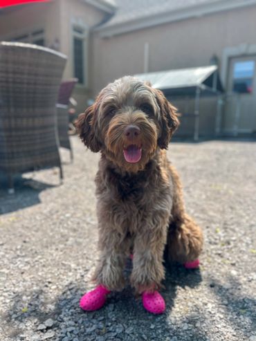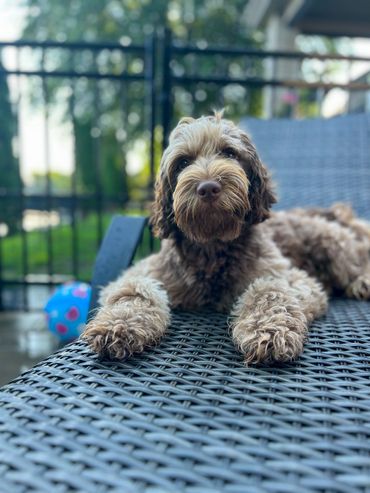 Lola est une golden doodle miniature F3. Elle est très active et adore jouer à la balle pour dépenser ses surplus d'énergie. Son activité préférée reste malgré tout être collée contre ses humains préférés. Lola est une vraie sauterelle. Elle adore sauter par-dessus des obstacles et ce peut importe leur hauteur. Elle est une chienne et une maman extraordinaire.
