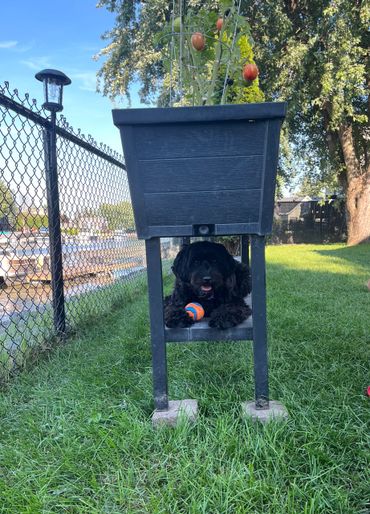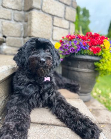 Margot est une golden doodle miniature F3. Elle est notre pot de colle vivante. Elle pourrait vivre que d'amour et d'eau fraîche. Notre douceur est très expressive et se fait bien comprendre avec son regard parleur lorsque quelque chose lui déplait. Son côté très maternelle la démarque du lot, sa personnalité pétillante s’allume lorsqu’il y a des chiots auprès d’elle.